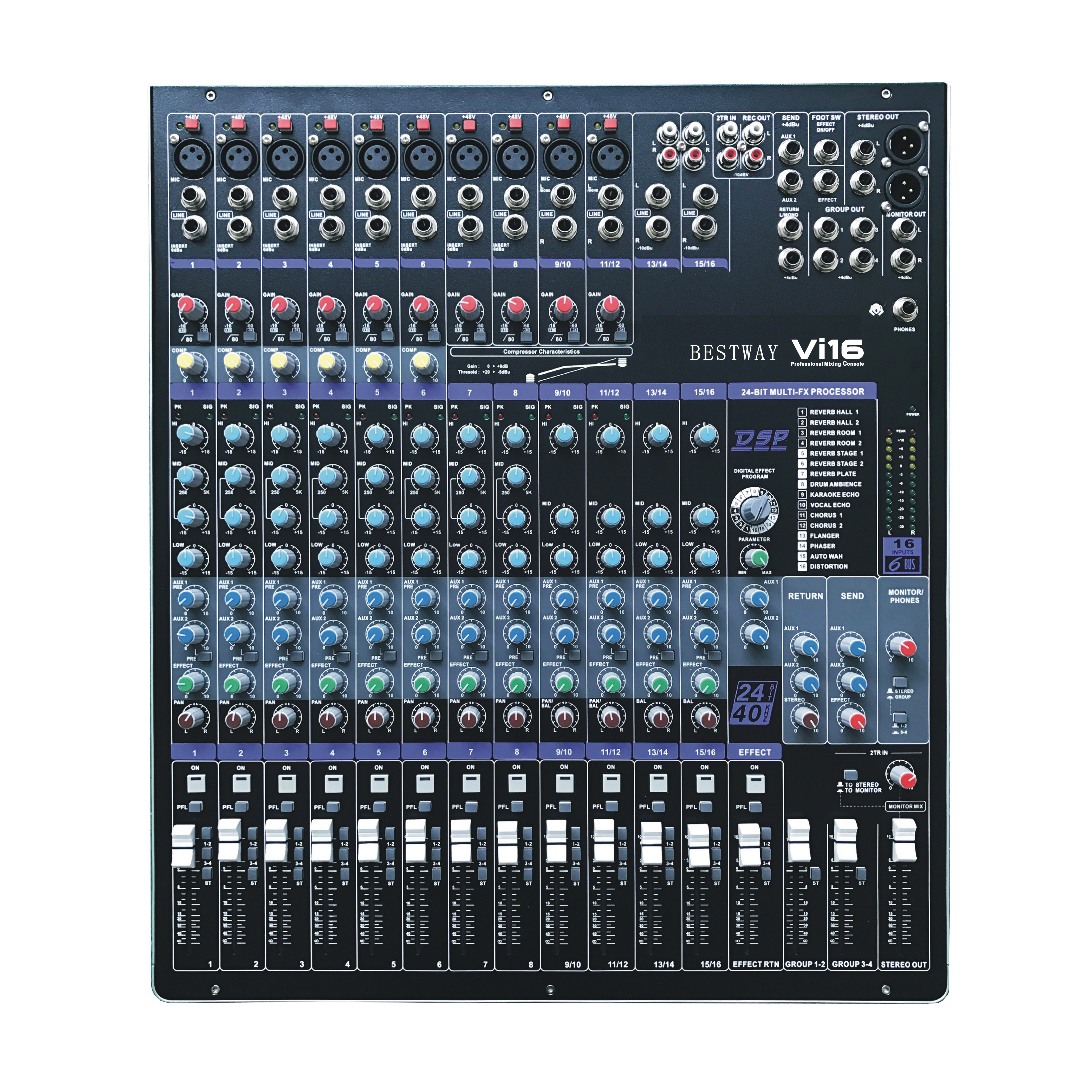 - 16 个输入通道,10个话筒输入,4 组立体声线路输入